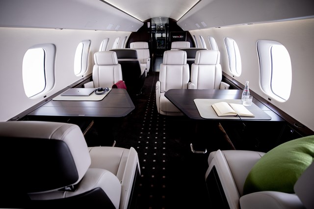 VistaJet's cabin design, consistent across the whole fleet, welcomes travelers all over the world. Passengers can use a fully enabled business suite or relax in a restful family space. The cabins are equipped for all needs.