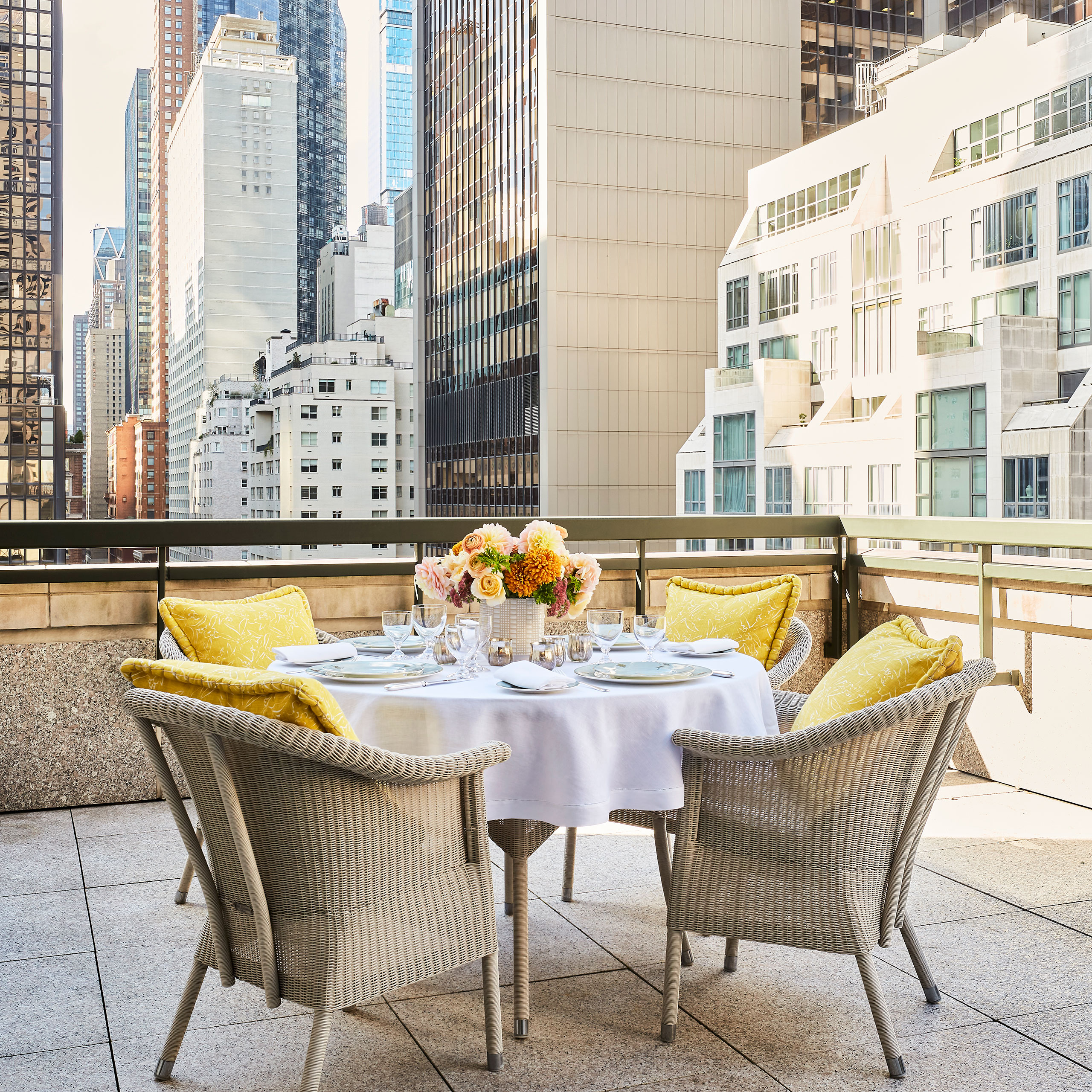 Occupying the entire top floor, The Whitby Suite is a spacious Two Bedroom suite with floor to ceiling windows, two king size bedrooms and bathrooms, a large living room, guest powder room and kitchen. Doors lead onto two sweeping terraces with stunning views of New York, spanning both sides of the hotel. The oversized white marble bathrooms are beautifully designed with two basins, a deep soaking tubs and separate shower.