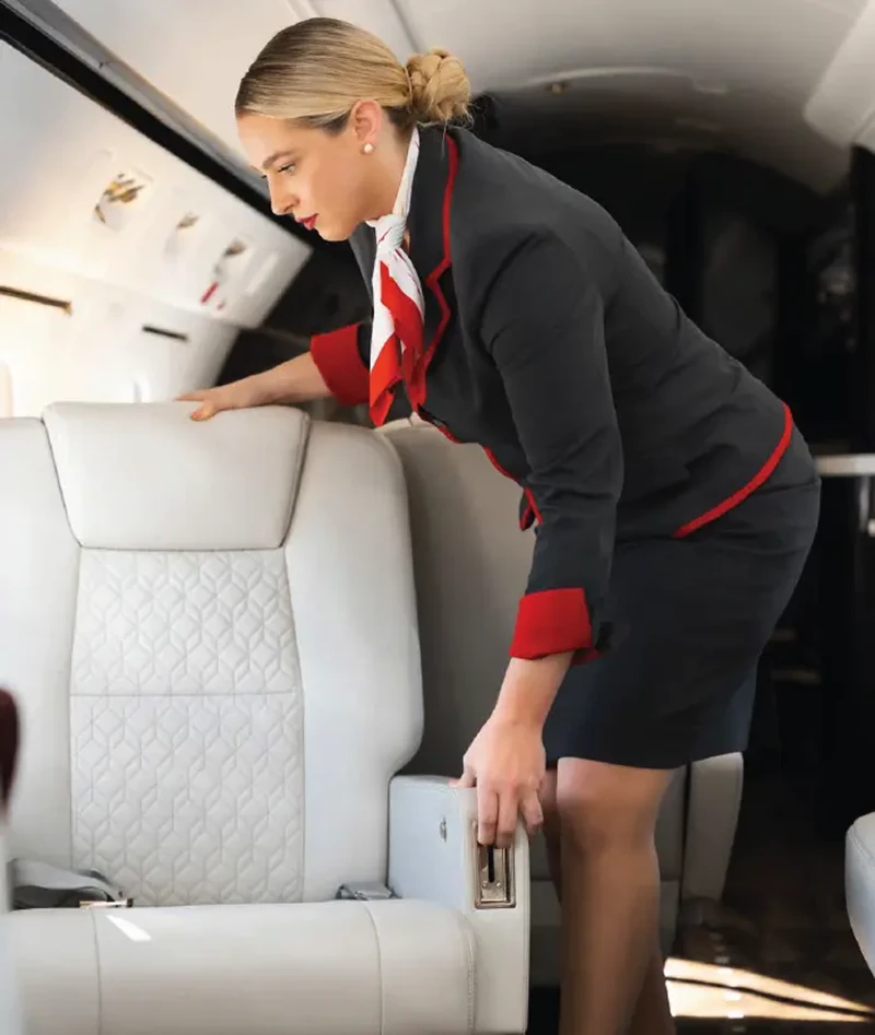 Each Cabin Host completes a 15-day training course learning the highest level of service and discretion. They subsequently fly with a trainer for 10 customer flights.
