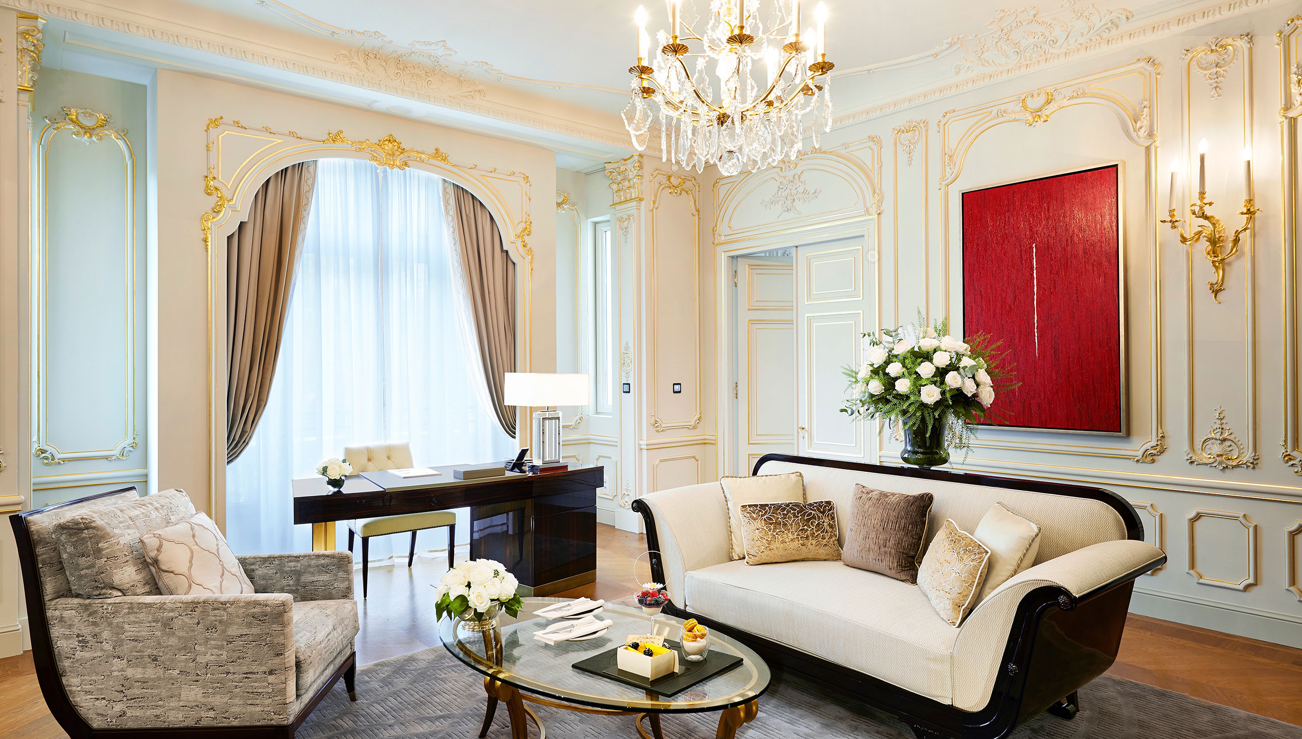 The Peninsula Suite is an authentic Haussmannian residence. With high ceilings and exquisite moldings, the suite features an oversized living room with a grand piano, a spacious dining room, private kitchen, private office, breath-taking Parisian views and up to three fully bulletproof bedrooms.