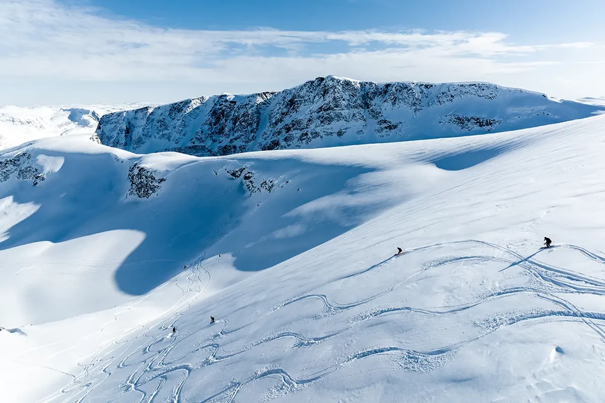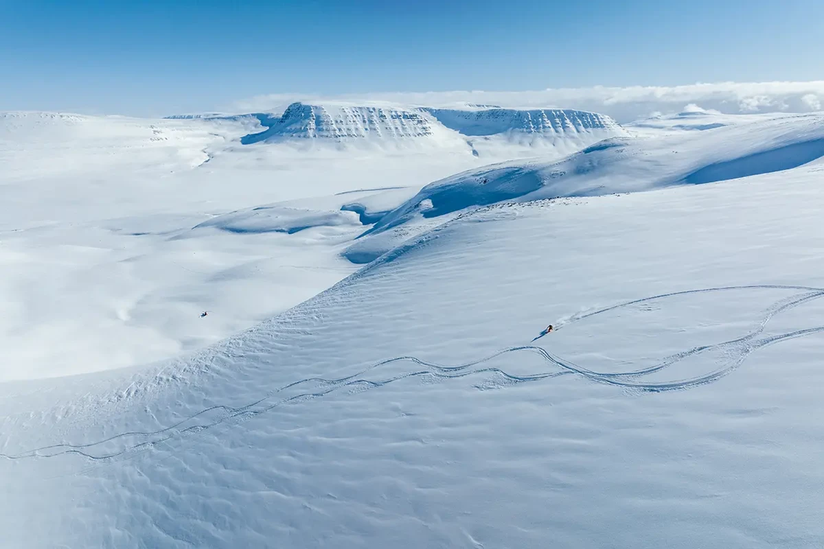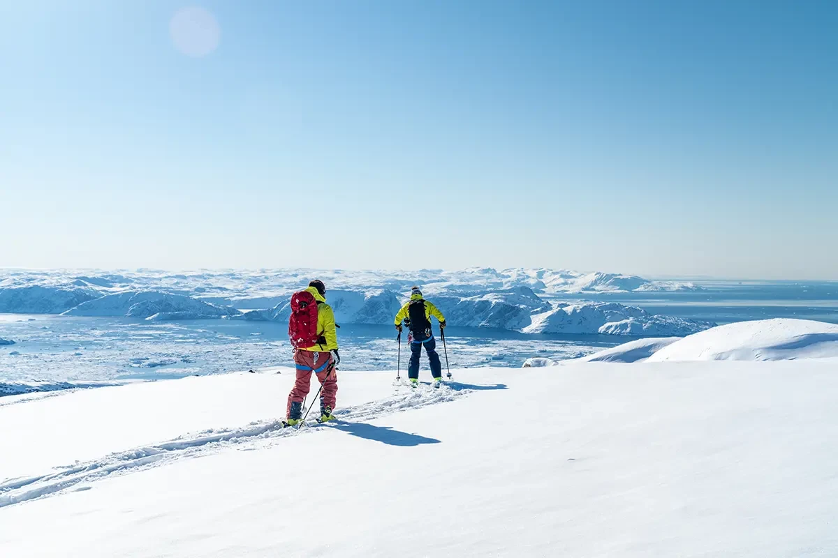 Untrammeled. Epic in scale. Greenland is the largest island on Earth. Here hardy Inuit communities perch on the edge of the massive Greenland ice cap, pursuing a timeless way of life. Icebergs, calved from the monumental Ilulissat Glacier, jostle in the waterways, while frozen fjords and vast fields of pack ice fringe Greenland’s western coast. In spring from April to June, from powder to corn, these protected fjords offer unparalleled access to prime heli-ski terrain. No lift, no lines. Ski from summit to sea on wide, treeless snowfields and down steep couloirs flanking glacier-sculpted peaks. Carve tracks where few have or will—from heights overlooking iceberg-choked bays and granite landscapes some 3.8 billion years old.