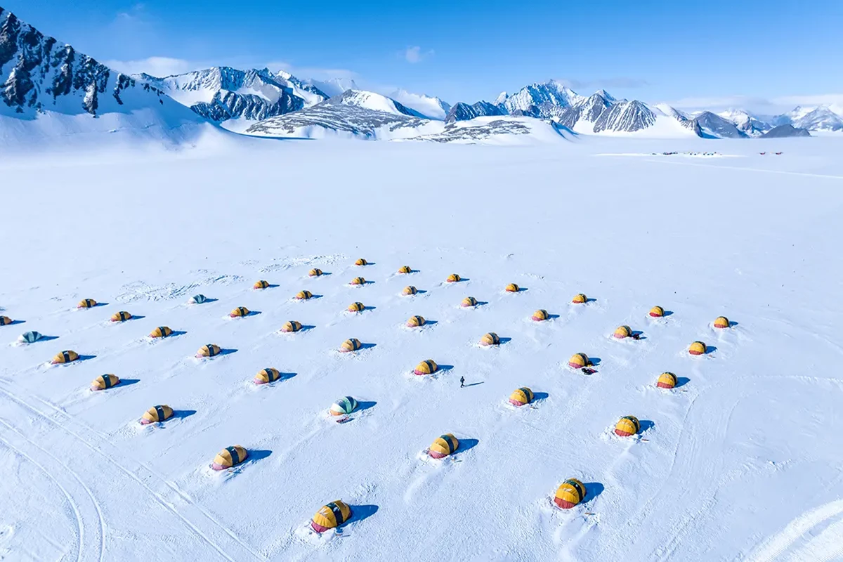 Arrive in Punta Arenas the day before, then board a 757 to arrive at Union Glacier, where we acclimatize at Three Glaciers Camp, located in the southern Ellsworth Mountains. Ski, snowmobile, or take a Tucker Sno-Cat for an overland journey to the Drake Icefall. When weather conditions permit, using ski aircraft, we then fly to the South Pole, covering in several hours the distance that took those early explorers years of planning and months of hardship to achieve. History comes alive as we stand at 90° South and understand how the early explorers felt heading out across the frozen continent and into the unknown 100 years ago. Beneath you, the ice is almost 10,000 feet (3,000 meters) thick, and all 360 lines of longitude converge, and you’ll have joined a very exclusive group of people who have journeyed this far south on our planet. A short 500m walk or all-wheel-drive vehicle ride takes you to our private South Pole Camp for an overnight stay. Enjoy a celebratory meal prepared by one of our talented chefs and spend time with fellow explorers in the large, heated dining tent. The next morning, you’ll pack up for the return flight to Three Glaciers Retreat where you’ll receive a certificate to commemorate your South Pole overnight experience in Antarctica!