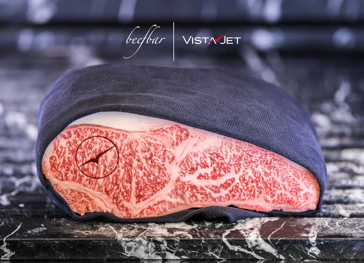 The menu onboard the Vista Members’ fleet features a selection of Beefbar’s iconic cuts, including the signature Kobe beef fillet, Wagyu beef fillet mignons, as well as a variety of street foods to share with other guests on flights of any duration.