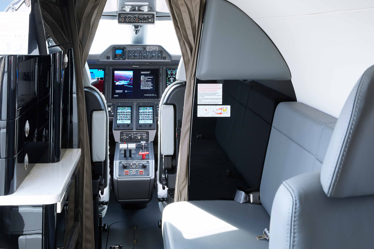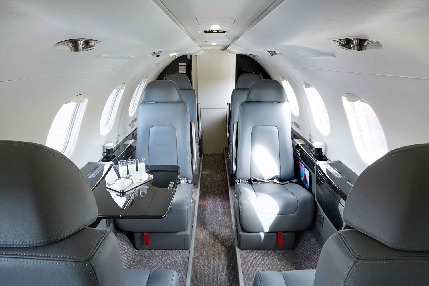 A fast and elegant aircraft that uses advanced technology to reach speeds of 450 knots, with generous stand-up space and features large windows designed for optimal cabin lighting.