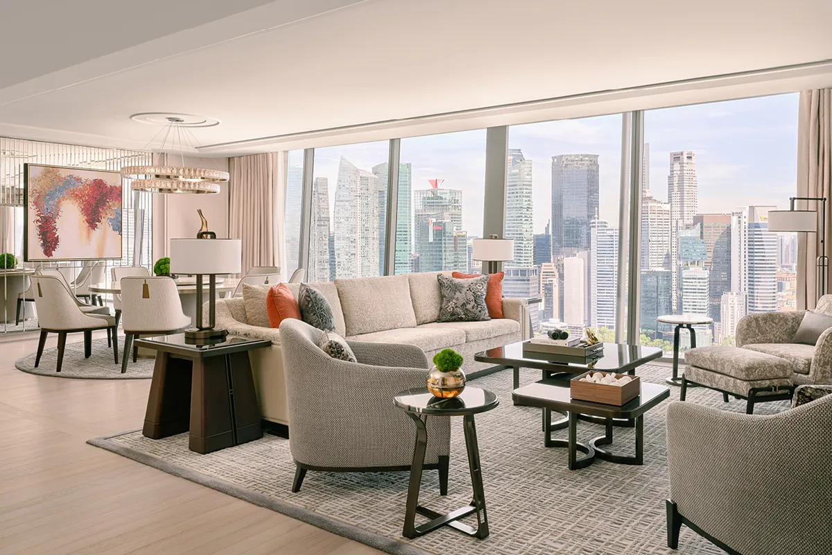 From discreet VIP entrances to lavish ensuite facilities, every aspect of our finest hotel suite collection is designed for privacy and comfort. Host elegant parties in our opulent dining rooms, customize your suite with varied entertainment options and bask in spectacular views of Singapore’s cityscape and sparkling sea.
