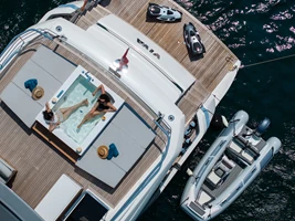 • Spacious Master Suite spanning three levels, connecting to a private foredeck pool—an innovation rarely seen on a yacht of her size